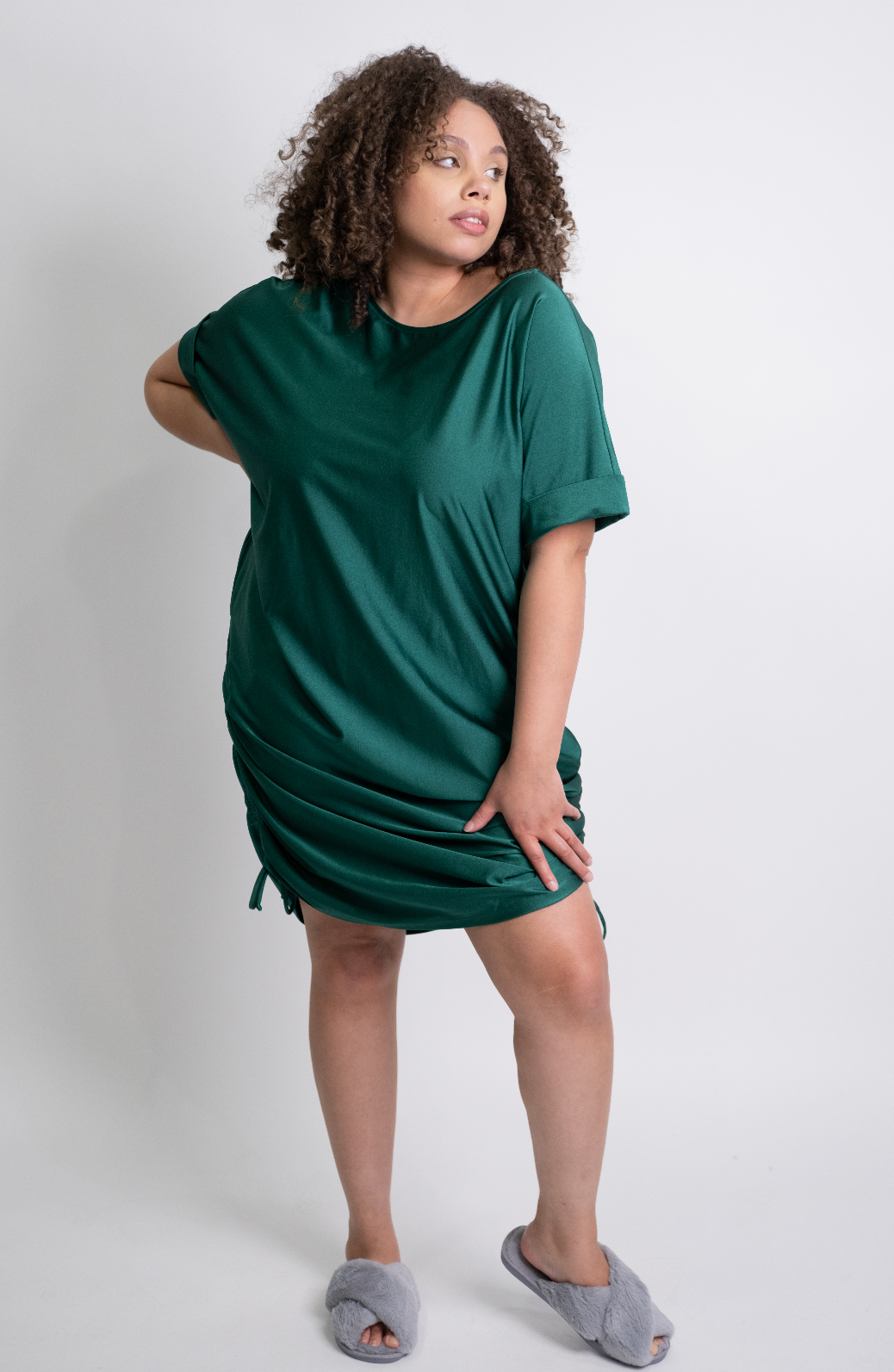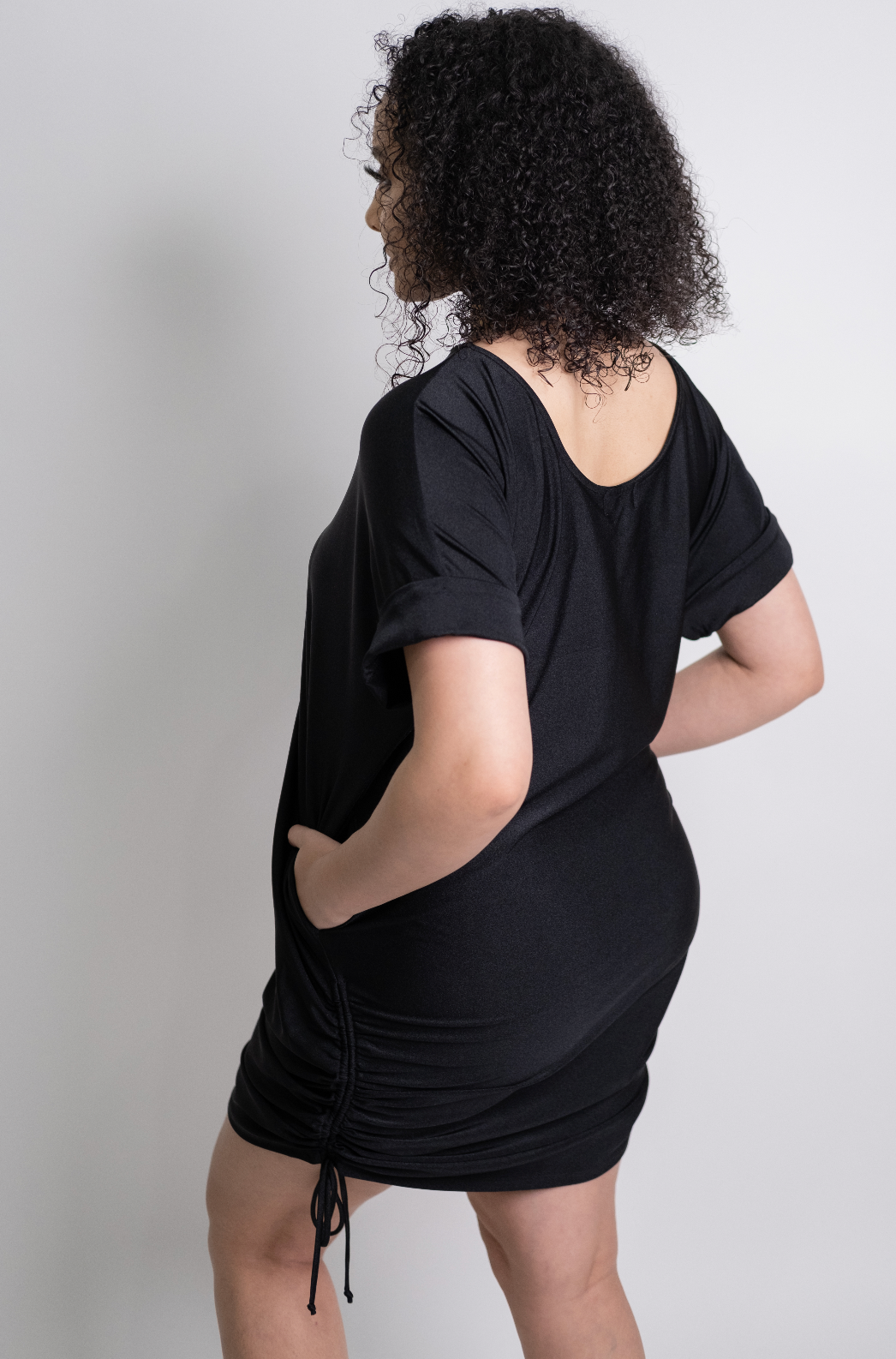 So versatile, you can switch the style based on your mood. Wear the lightweight dress at its full midi length or hitch it up to expose more leg— Bonus: The ruched sides create beautiful drapes on the front and back side of the dress. This dress provides full coverage and can be worn on both shoulders or spice it up and wear it off the shoulder.